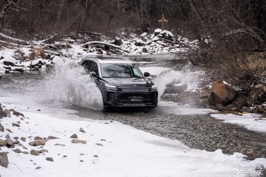 另外就是四驱,第三代蓝电E5PLUS把“全时四驱”拉到12万级,系统综合功率270kW,零百加速6秒级,媲美3.0T燃油车。最让人惊喜的是“全程可靠”——长白山极寒测试中,满电、馈电状态都能轻松爬冰雪陡坡,雪地、砂石路更是不在话下。