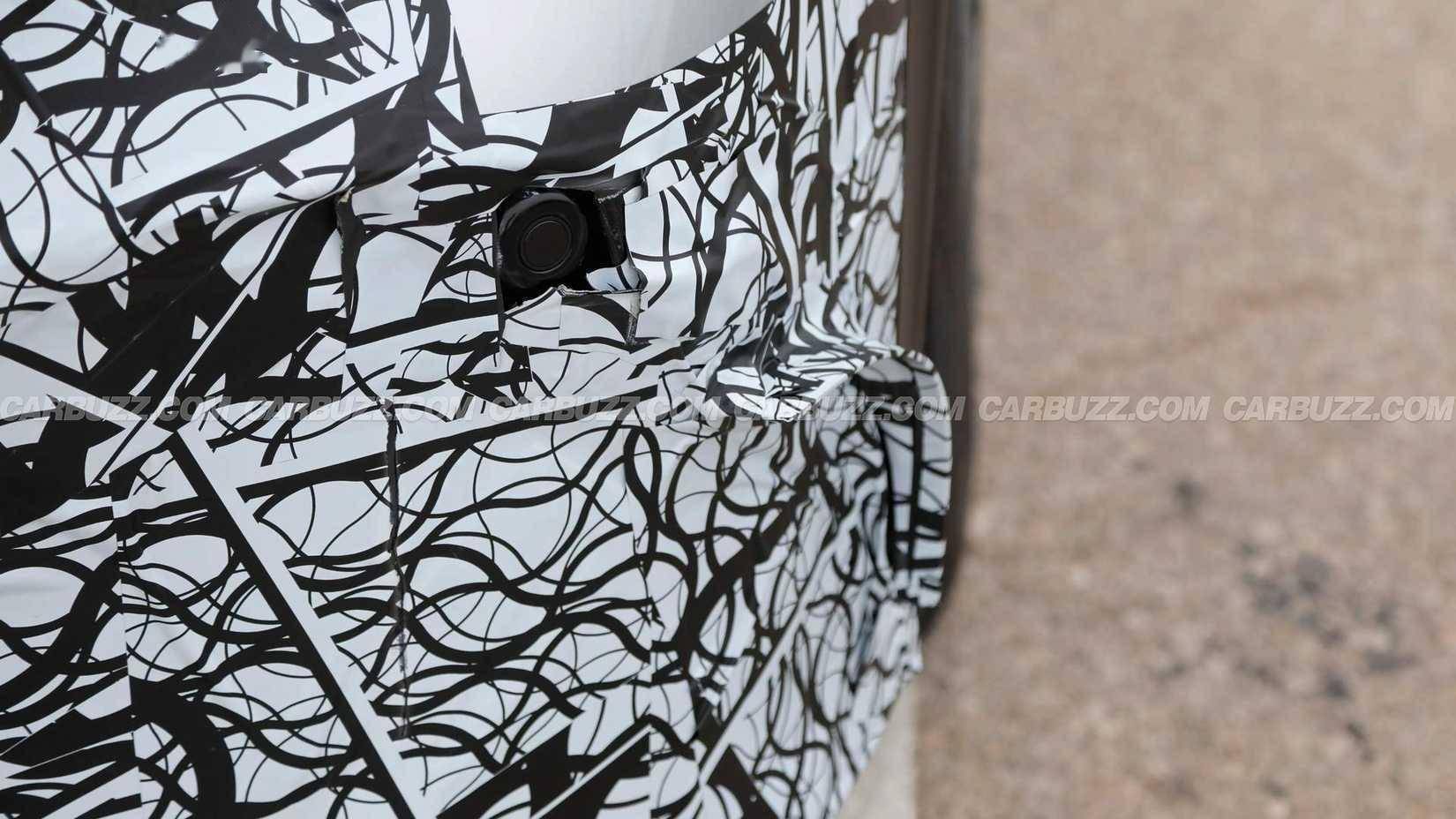 从外观细节来看,GLC 53的伪装贴纸下隐藏着更激进的空气动力学设计。车头部分,更大的下分流器与扩大的进气口成为视觉焦点,前保险杠两侧新增的气动装置进一步强化了运动属性。车身侧面,深邃的侧裙取代了普通版的镀铬饰条,轮拱边缘明显外凸,既可能为更宽的轮胎预留空间,也可能具备优化气流的功能。车尾部分,家族式星形尾灯得以保留,掀背顶部配备的可调节主动式扰流板则成为点睛之笔,旨在高速行驶时提供额外下压力。
