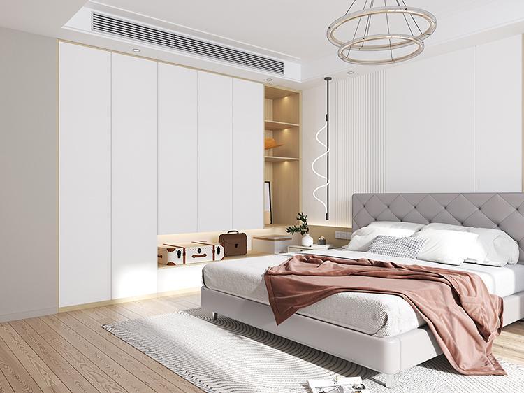 床头背景墙可用衣柜同色板材做简约造型,替代昂贵软包