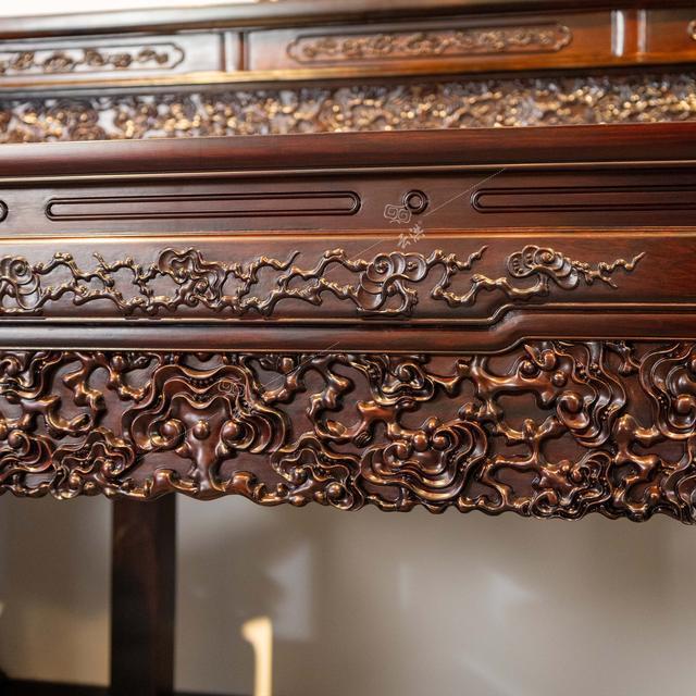 大红酸枝的油性好,质感温润,纹理漂亮,特别符合国人的审美标准,制作成的精品家具,摆设出来非常的上档次。
