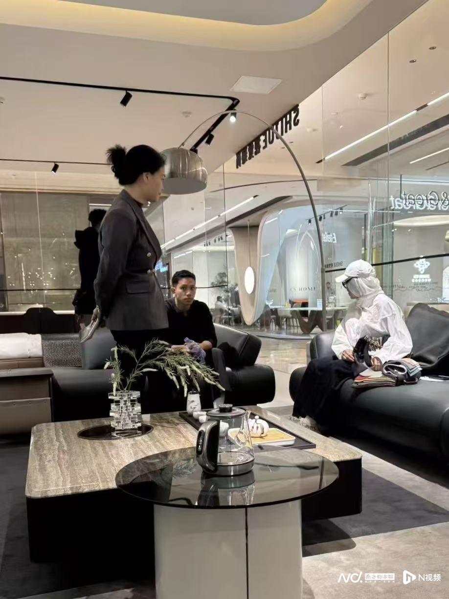 2025年12月27日,亚蒂一家五口抵达广州。他们先是在广州各大商圈逛了几天,12月30日那天专程前往佛山乐从家具城,“我们对比、试坐了不同风格、款式的沙发,店员提供一整沓不同颜色不同皮料的样本让我们挑选,我们发现还是极简的黑色皮质沙发比较适合新家。”