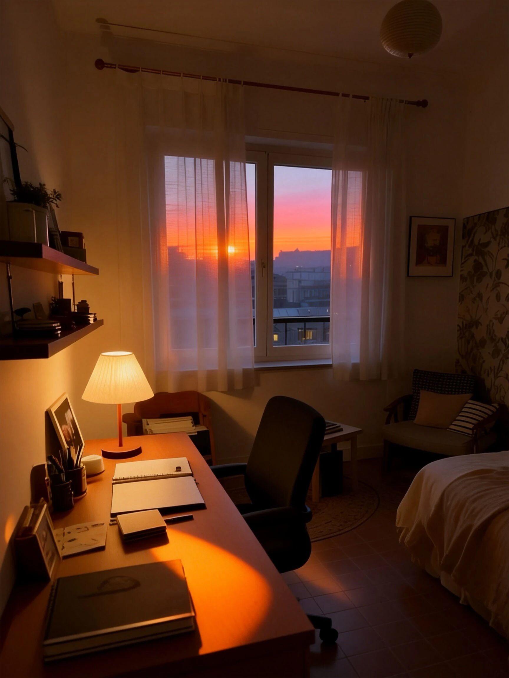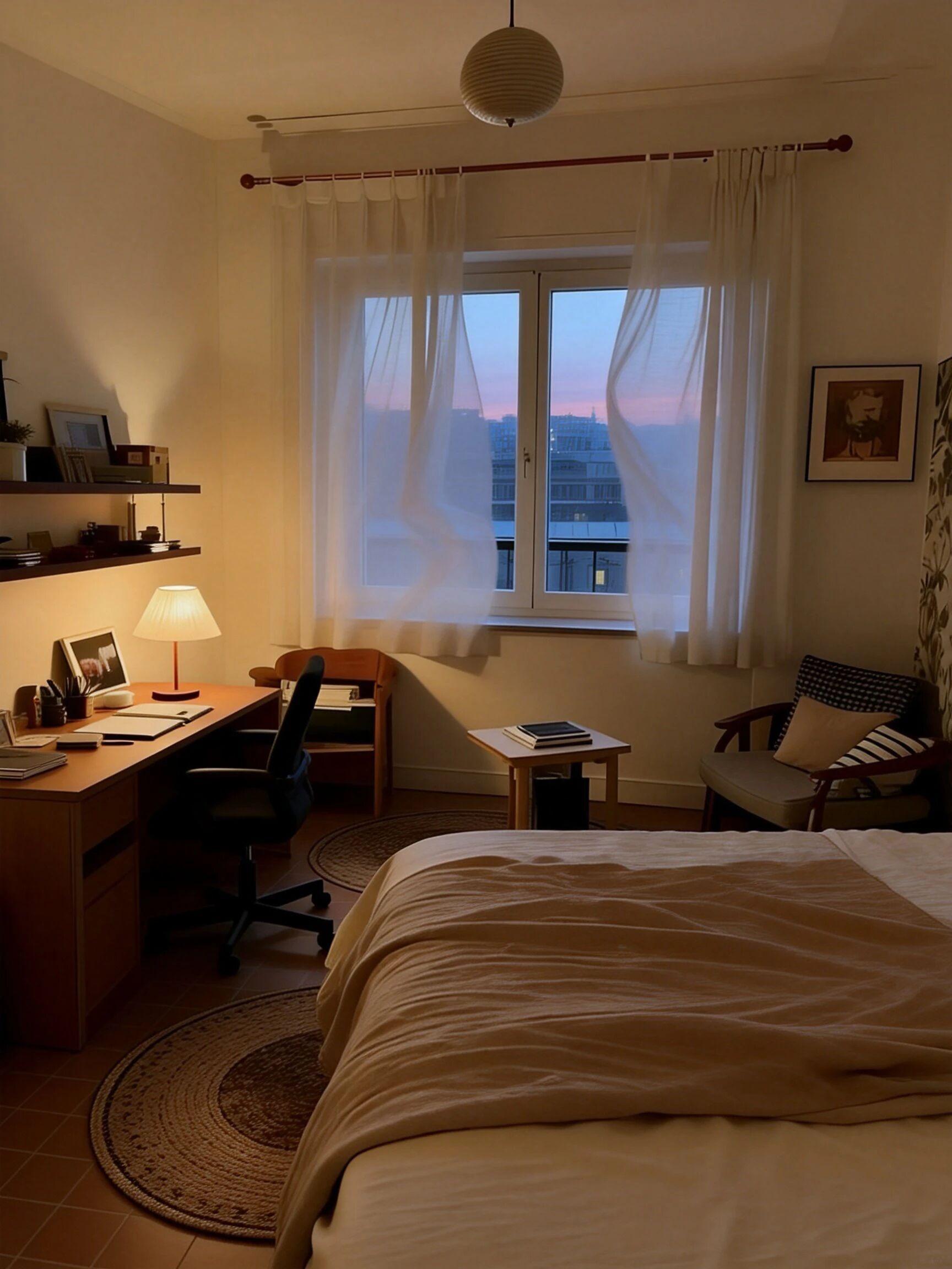 ️窗景是免费滤镜:纱帘一挂,夕阳一照,根本不用P图!