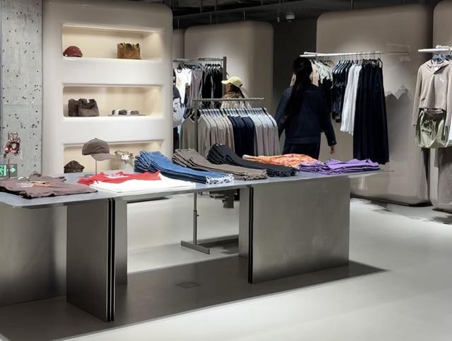 走进门店,挑高设计让门店空间豁然开朗,中性大地色系打底,木材、天然织物的触感随处可及。