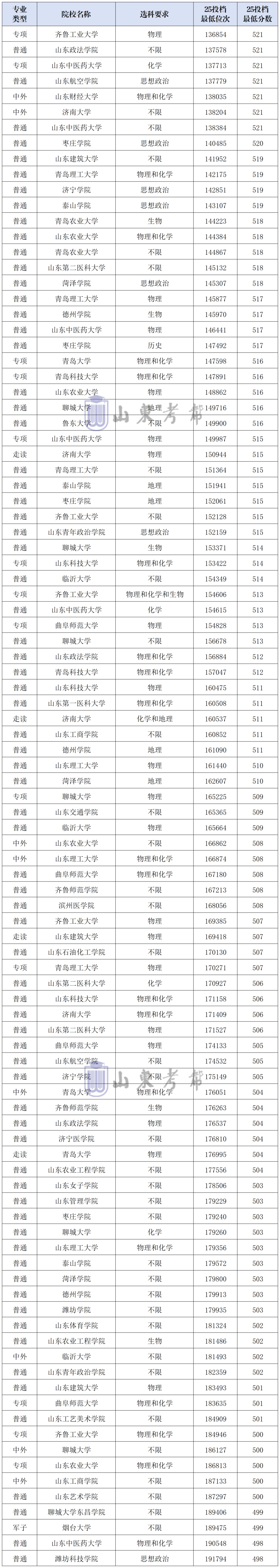 收藏!2026山东考生分数位441至521能报哪些院校?