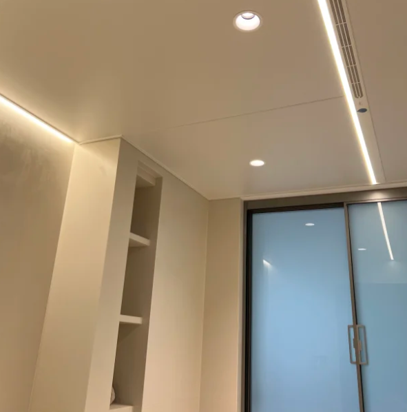 它们不仅颜值高,还可以在吊顶里面嵌入各种线性灯,筒灯,射灯,打造出氛围感和高级感。