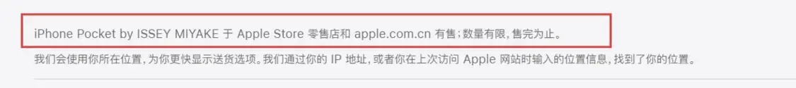 11月13日,近日,苹果与三宅一生合作推出iPhone Pocket配件,短带款有柠檬色等8色,售价1299元;长带款提供宝石蓝等3色,售价1899元。官网底部小字显示,iPhone Pocket by ISSEY MIYAKE于Apple Store零售店和apple.com.cn有售,数量有限,售完为止。