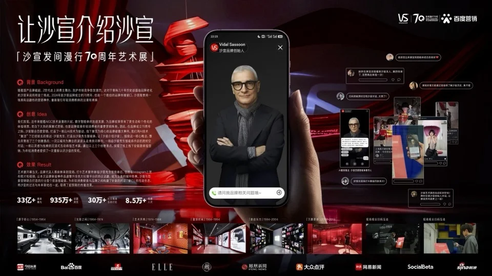 在《沙宣×百度营销 让沙宣介绍沙宣》案例中,巧借「沙宣70周年」之际,沙宣与百度营销联合打造行业首个双语智能体,为年轻消费群体与品牌之间构建了全新的对话「窗口」和互动生态。沙宣先生智能体作为品牌化身,将沙宣的过去与未来联结在一起,让单一的品牌叙事有了更个性化的表达,与年轻消费者同频共振,助力沙宣全新的品牌体验探索。