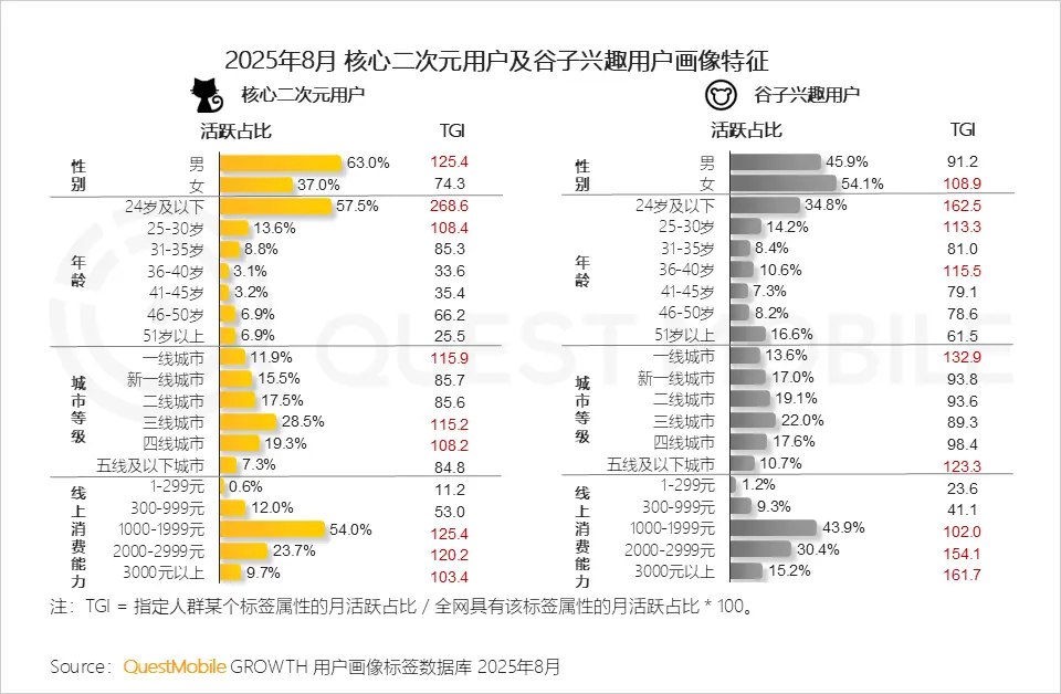 1.6 核心二次元生态是年轻男性的阵地,但其衍生出的谷子经济由女性群体、消费能力更强的谷子兴趣群体驱动