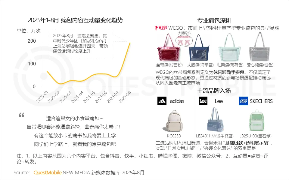 2.3 其中“痛包”持续出圈,越来越多大众箱包品牌推出带有透明展示袋的痛包款式,让痛包更贴近日常消费场景
