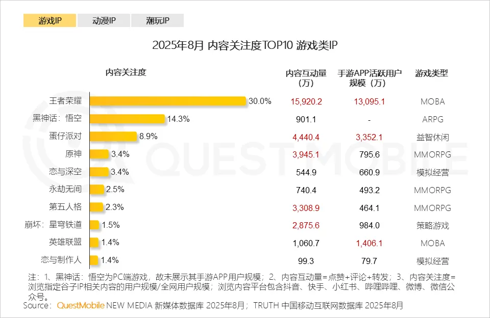 如《浪浪山小妖怪》《哪吒2》电影上线,《凡人修仙传》的剧版推出进一步放大原有IP热度;而《王者荣耀》《原神》等常青IP则通过构建沉浸式的世界体验、线上线下联动等方式持续吸引用户。