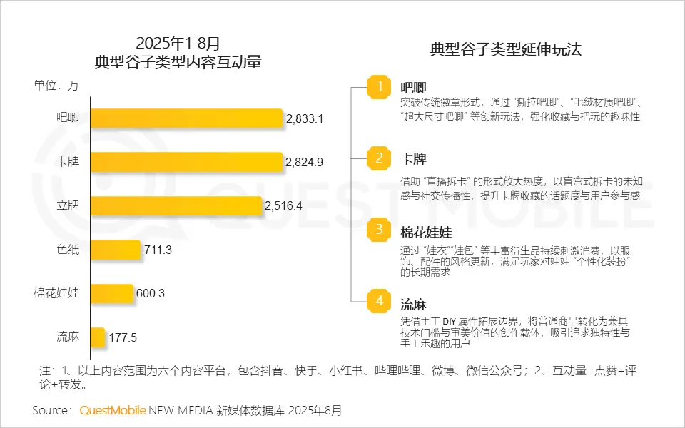 4.1 谷子品类上,满足大众需求的吧唧依旧主导,衍生玩法催化传播,谷子经济从实物收藏走向共创体验