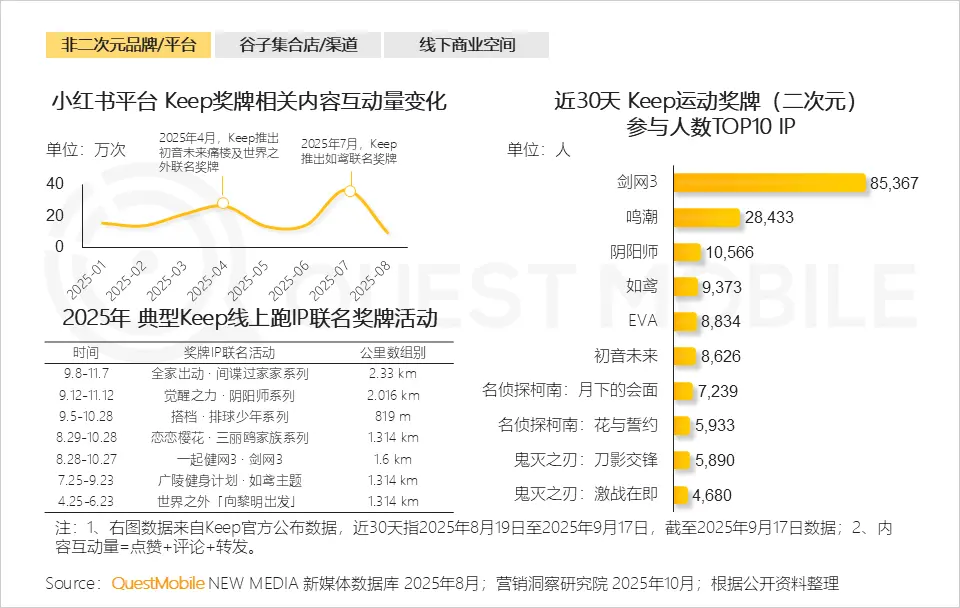 如Keep线上跑以实体奖牌为核心激励抓手,将抽象的运动成果转化为可触摸、可展示的具象化奖励,有效激发用户的参与热情与运动黏性,吸引二次元圈层人群(可能原本对健身不感兴趣)为喜爱的IP而尝试跑步。