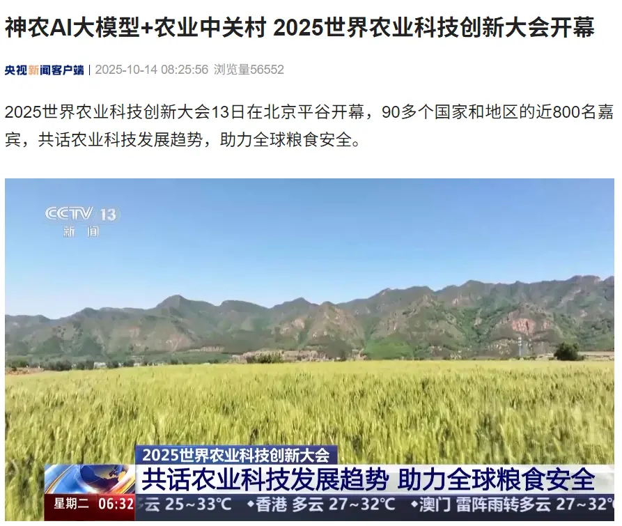世界农业科技创新大会上,神农 AI 大模型 3.0、农业中关村 2.0 等一系列最新农业科技成果相继发布。
