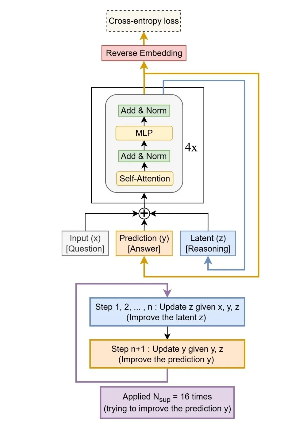 其核心机制在于“递归推理”:模型对自身输出的预测进行反复迭代和修正,每一步都纠正前一步的潜在错误,直至答案收敛稳定。