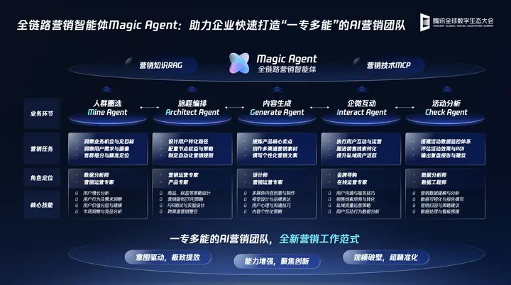 面对“增量”转向“存量”的新常态,企业正普遍陷入“增长焦虑”。9月17日,在2025腾讯全球数字生态大会上,腾讯企点营销云全面升级,推出以“Magic Agent”为核心的全链路营销智能体,旨在通过AI技术为企业提供一套全新的增长解决方案,以解决从高层战略到一线执行的营销增长困境。