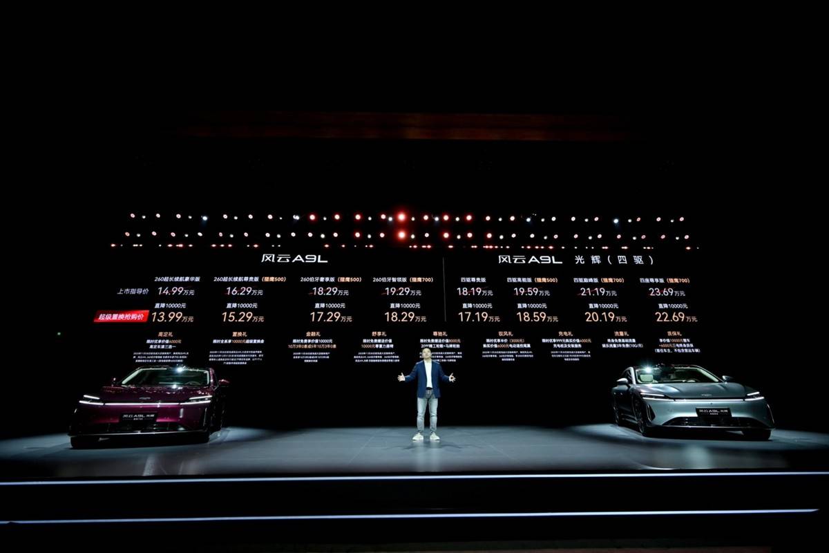 2025年11月15日,重庆广阳岛国际会议中心见证了一场汽车产业的技术革命——奇瑞风云A9L光辉四驱版全球正式上市。本次上市共推出四款车型,其中四驱尊贵版售价17.19万、四驱高能版(猎鹰500)售价18.59万、四驱巅峰版(猎鹰700)售价20.19万、 四驱尊享版(猎鹰700)售价22.69万。并同步推出"九大购车权益",涵盖高定、置换、金融、舒享、尊驰、驭风、充电、流量、质保多重礼遇。这款以“智驾升维”与“豪华平权”为核心战略的中大型新能源轿车,不仅以17.19万-22.69万元的亲民定价击穿市场认知,更通过Momenta R6强化学习大模型、AI磁悬浮数字底盘等前沿技术,重新定义了C级车的价值标准。