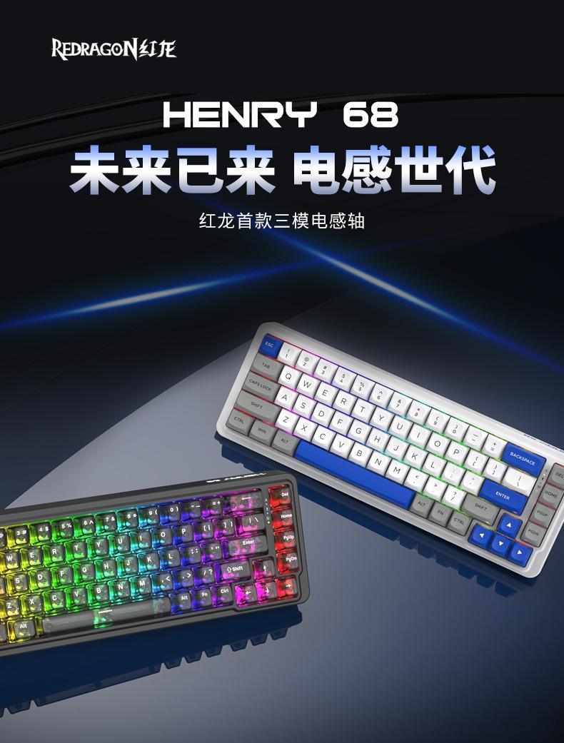 11 月 19 日消息,REDRAGON 红龙上周上架了该品牌的首款三模电感轴键盘 HENRY 68。这一型号采用 68 键 65% 配列,搭载与优力纬尔合作开发的“特斯拉电感轴”。