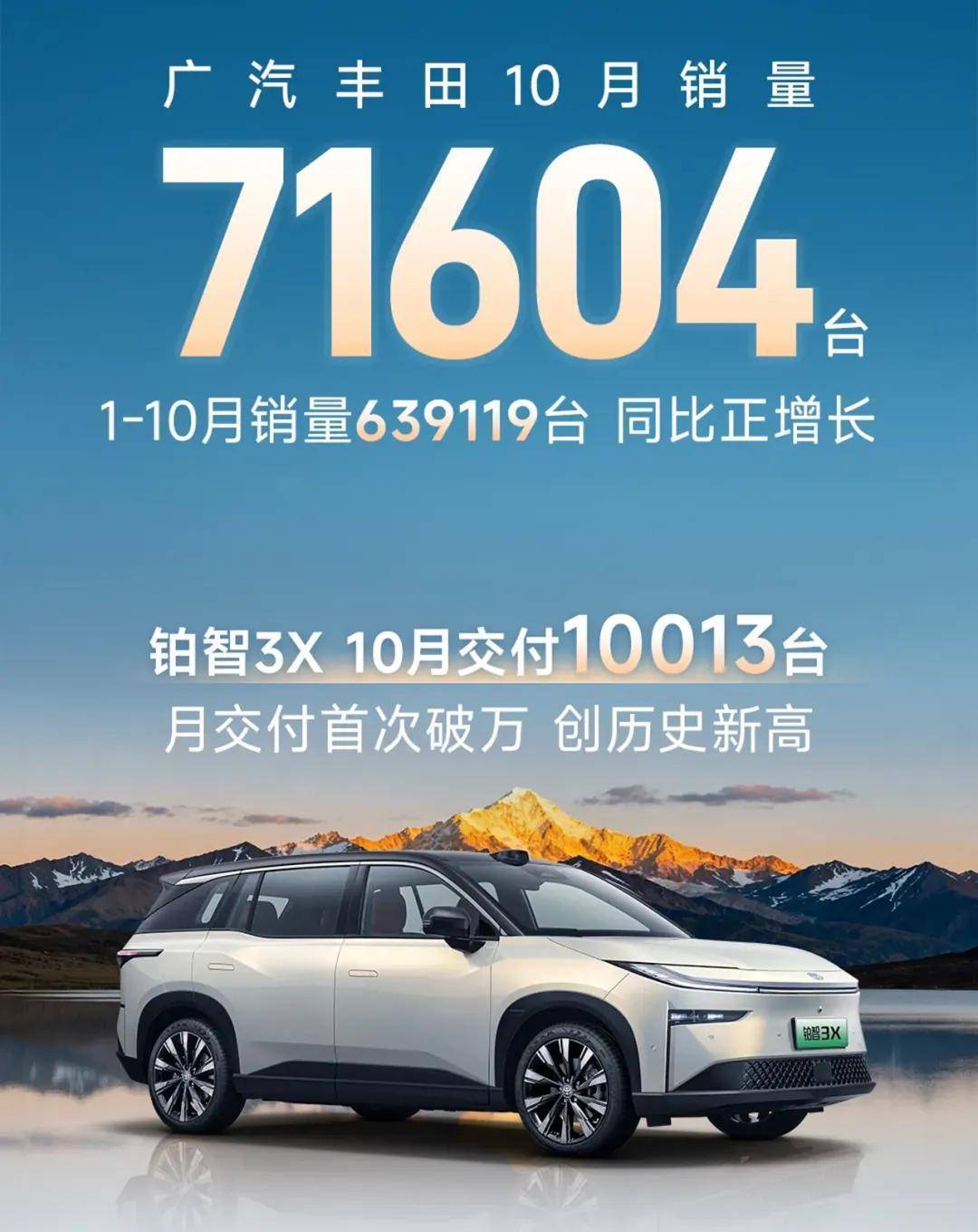 刚过去的10月份,广汽丰田销量71604台,实现同比0.7%;1-10月累计销量达到64万台,在燃油车市场同比下滑的大环境下依然同比增长,成为广汽集团旗下销量贡献最高的品牌,全年朝着75万台的目标稳步迈进。