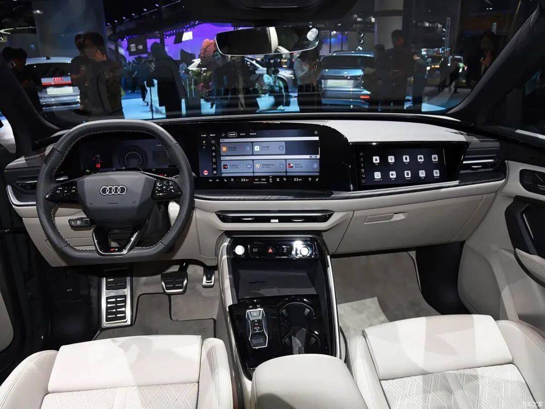 随着全新A5L的上市,Q5L在内饰层面就没有太多惊喜了。驾驶员前方为11.9英寸的仪表+14.5英寸中控屏组成的曲面双联屏,13.1英寸的HUD,副驾驶一侧还拥有10.9英寸的专属屏幕,中控下方集成了40W的无线充电与滑块式的换挡机构。配置方面,这款车预计会提供米色、棕色、黑色和红色四种内饰可选,平底运动方向盘、B&O音响等也会配备。后排座椅支持4/2/4比例放倒,后备厢的容积预计达到505L。