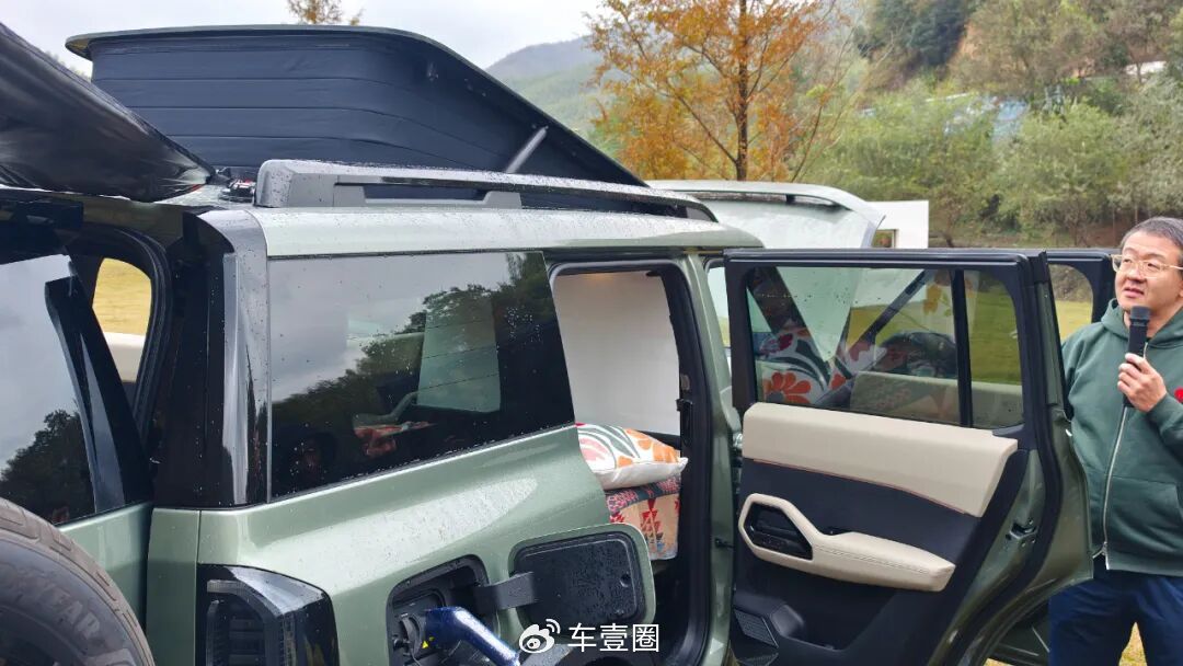一键启动升顶功能后,车内后排头部空间可提升36厘米,搭配“一键成床”设计,前后排座椅放倒后无需挪动后备厢物品,就能形成宽敞平整的睡眠区域。坐直起身毫无压抑感,这种Loft般的起居体验,让车宿彻底告别了传统SUV的局促。更贴心的是,升起的天幕四周可替换罩子,蚊帐适配夏夜露营,防风幕布应对复杂气候,全场景适配能力拉满。