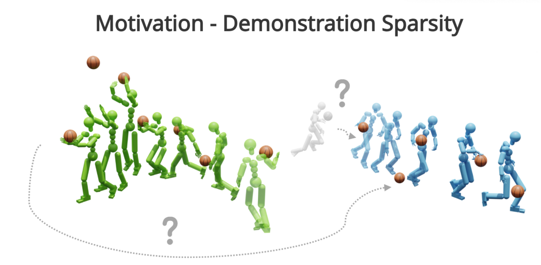 稀疏性 (Sparse):演示数据仅覆盖了有限的技能变体,缺乏技能之间的过渡轨迹。