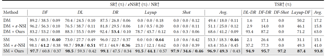 实验表明,相比此前的SOTA (SkillMimic)方法,SkillMimic-V2在困难技能(如 Layup)上的成功率从0提升到了91.5%。技能转换成功率 (TSR) 更是从2.1%飙升至94.9%。