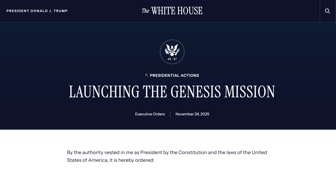 刚刚,美国白宫发布声明,美国总统唐纳德·约翰·特朗普(Donald John Trump)签署了一项行政命令,将启动“创世使命(The Genesis Mission)”计划。该计划是一项全国性倡议,将汇聚美国国家实验室超级计算机和顶尖科学人才的力量,改变科学与研究的开展方式,加速利用AI取得科学突破。