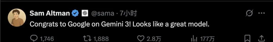 直到最近,谷歌发布了Gemini 3——让骄傲的马斯克、自信的OpenAI创始人奥特曼,都齐齐点赞,“看起来是个很棒的大模型”。