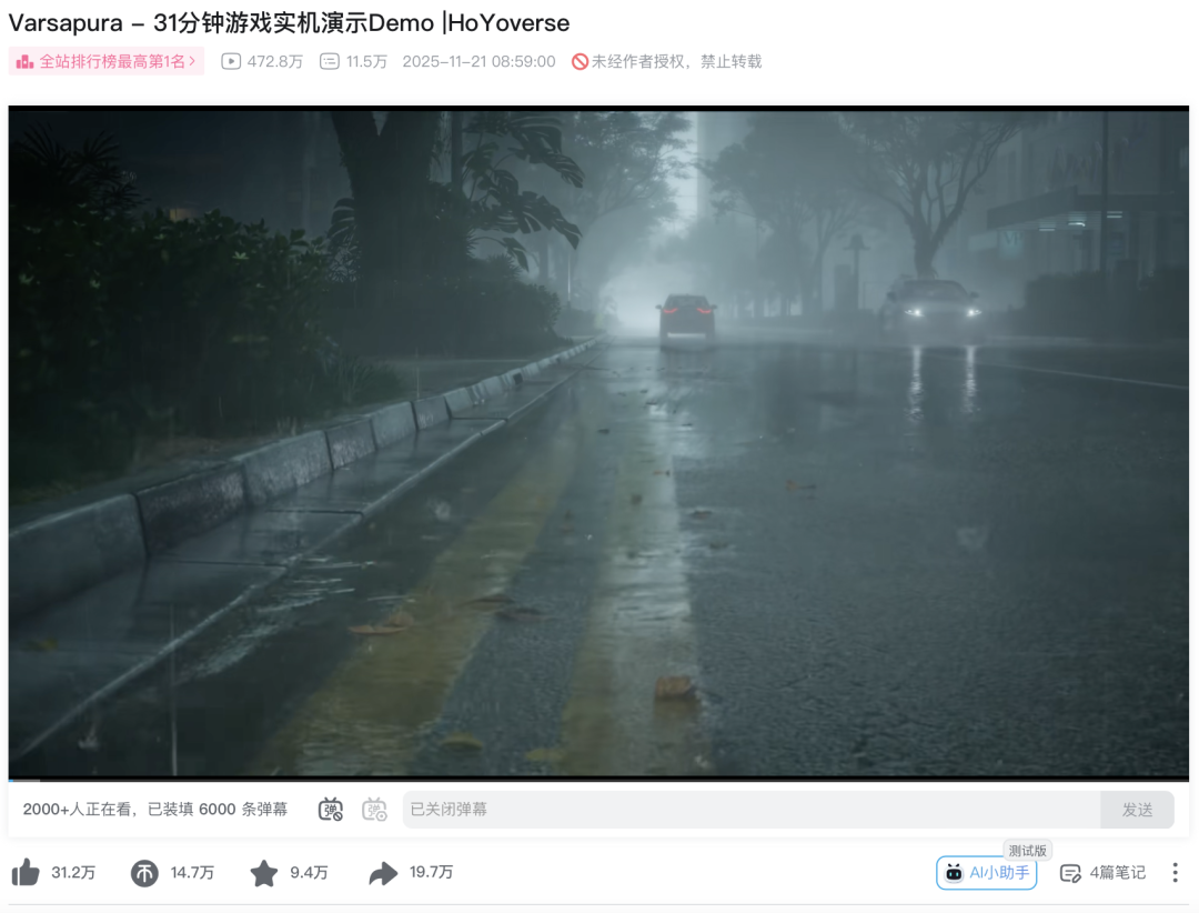 渲染了多日,11月21日,一支时长31分钟的实机演示Demo,正式揭开了米哈游旗下新游《Varsapura》的神秘面纱。