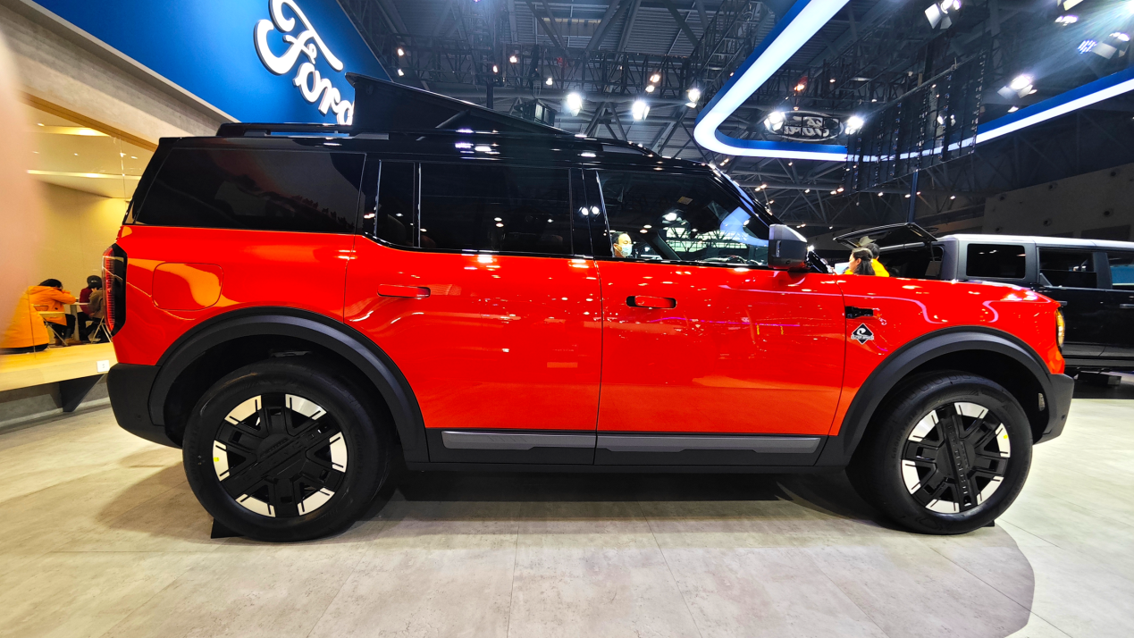 初见智趣烈马,最震撼的莫过于其颠覆性的外观设计。设计师从1966年初代Bronco中汲取灵感,将经典圆形头灯与现代LED技术完美融合,配合熏黑蜂窝状进气格栅,营造出极具攻击性的前脸造型。车身侧面采用悬浮式车顶设计,尾部全尺寸备胎罩彰显了冒险基因。