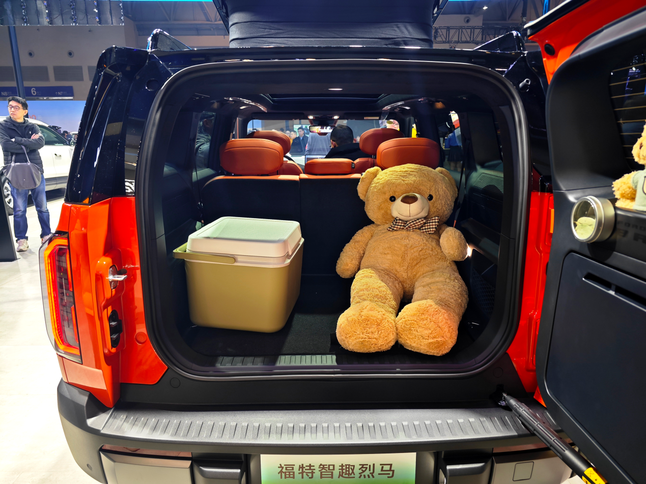 和外观相比,福特智趣烈马直接颠覆了传统越野车的内饰等于塑料+铁皮的糙汉子形象。12.3英寸全液晶仪表盘+27英寸4K中控屏以及SYNC+2.0智行互联系统,直接赋予了车辆沉浸式的科技体验。福特智趣烈马座椅采用Dinamica环保超细纤维材质,触感细腻且具备优异的透气性。前排座椅配备加热/通风/按摩功能,后排腿部空间达到980mm,即使身高180cm的乘客也能获得两拳以上的余量。这还不算,福特智趣烈马配备了同级唯一一键式可放倒座椅,无需挪动后备箱行李就能让第一排和第二排变身“双人卧室”或“观星舱”,露营党狂喜。