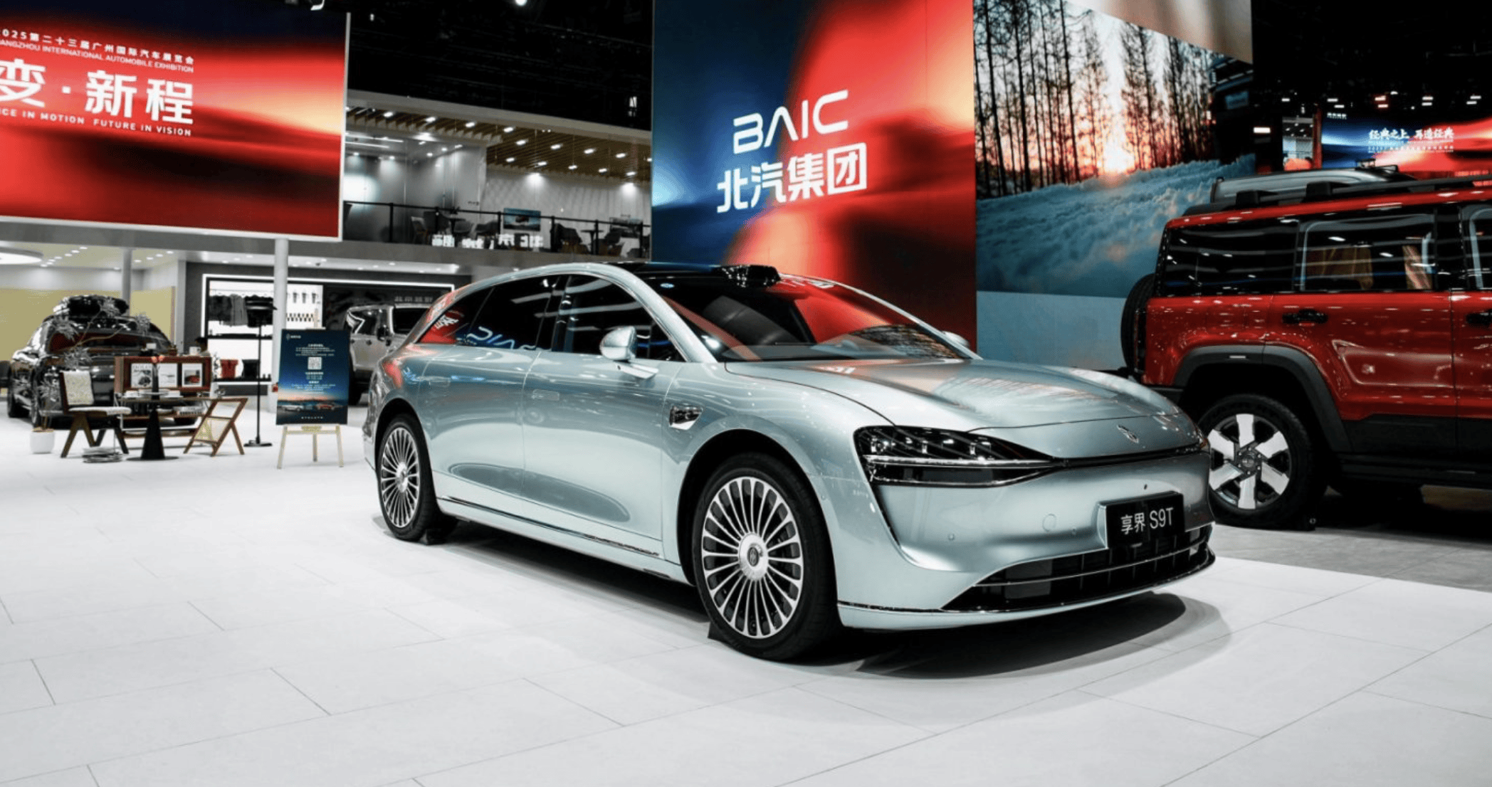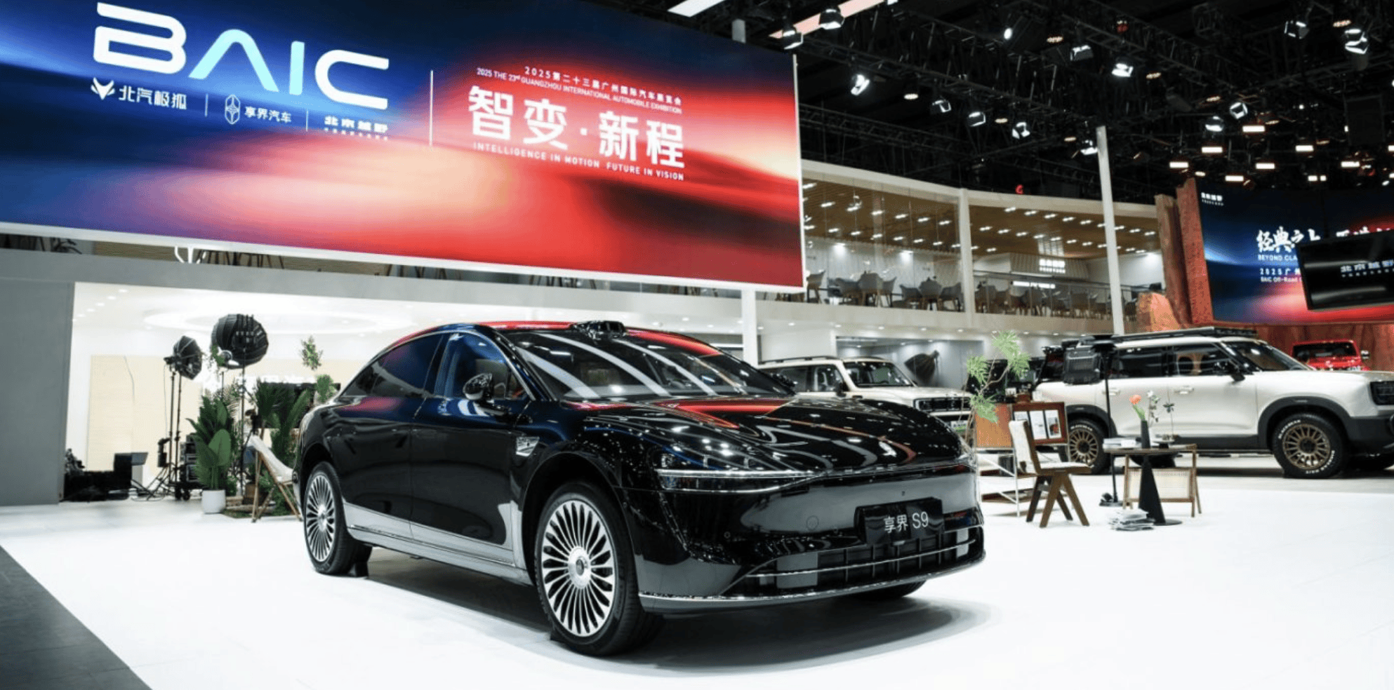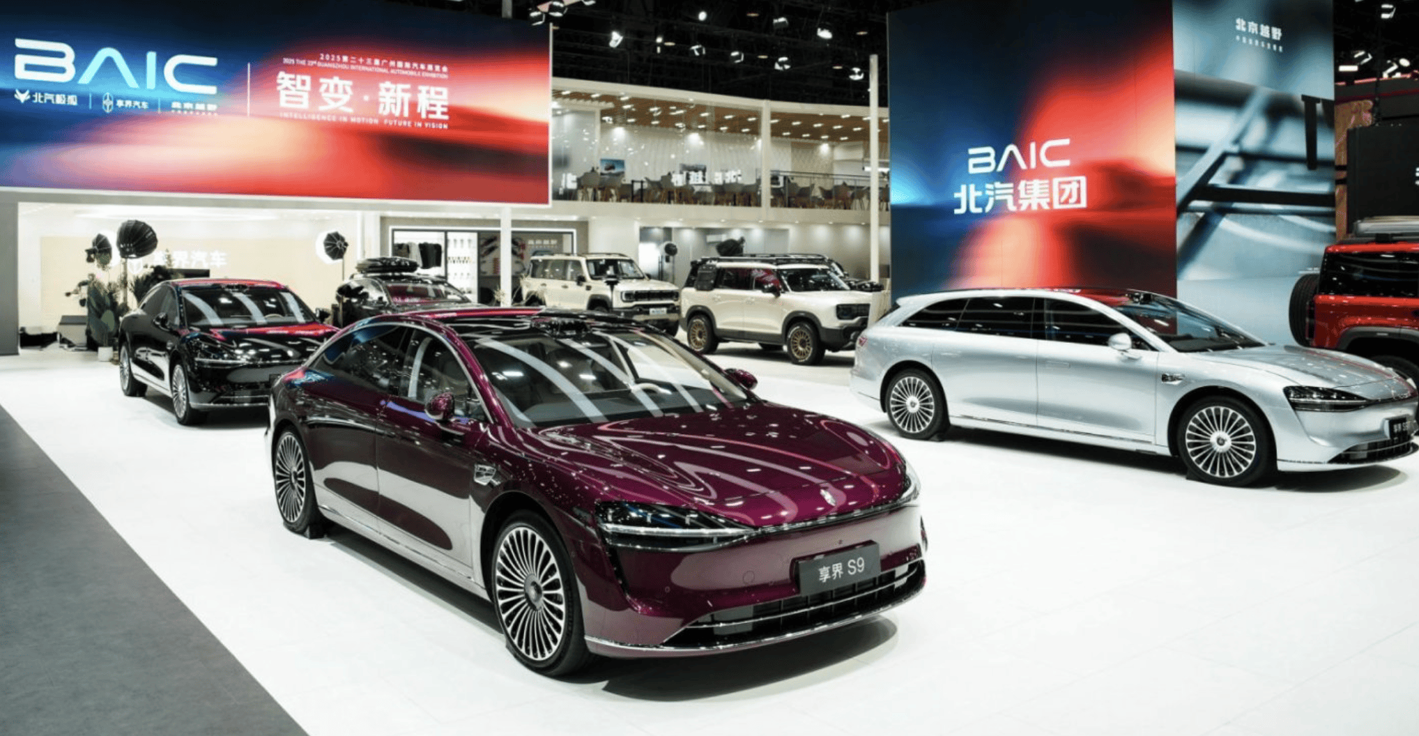 广州国际车展5.1号馆内,北汽集团与鸿蒙智行双展台被人潮层层包围,两款悬挂崭新“寰宇之星”车标的享界S9与S9T成为聚光灯下的焦点。