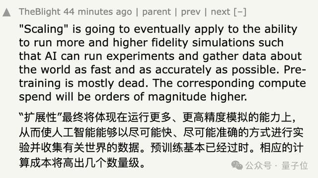 根据推特上某些讨论,Gemini似乎找到了让预训练更有效的方法。但预训练最终会遇到一个硬上限:数据有限。那之后怎么办?要么寻找新的「强化预训练」方式,要么探索强化学习,或其他完全不同的路径。当算力巨大到一定程度,我们又会重新回到「科研时代」。