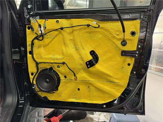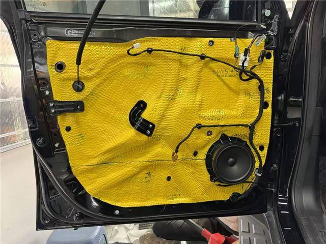 原车门板铁皮结构比较单薄,车门内部隔音措施做的也不是很到位,风噪很容易通过门板传入到车厢内部,技师使用金鲨JS300对四门做止振处理,让门板形成一个密封箱体,有效减少了风噪的传入。