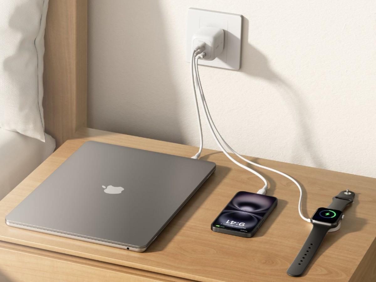 这意味着用户在为一台 15 英寸 M4 MacBook Air 进行满速充电的同时,还能以快充速度为另一台手机补能,甚至在三口模式下同时维持笔记本、手机和耳机的电力,更好覆盖差旅办公场景。