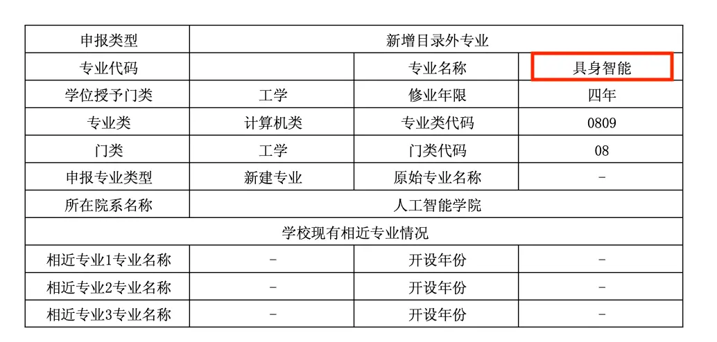 比如同一时期,东北大学机器人科学与工程学院也发布公告,拟申报增设具身智能本科专业。
