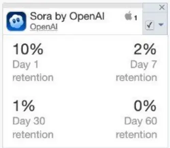 更致命的数据来自用户留存率。根据2025年11月的统计数据,Sora 2的30天用户留存率不足1%。这意味着100个下载了应用的用户中,一个月后只有不到1个人还在继续使用。到了60天,这个数字更是接近0%。