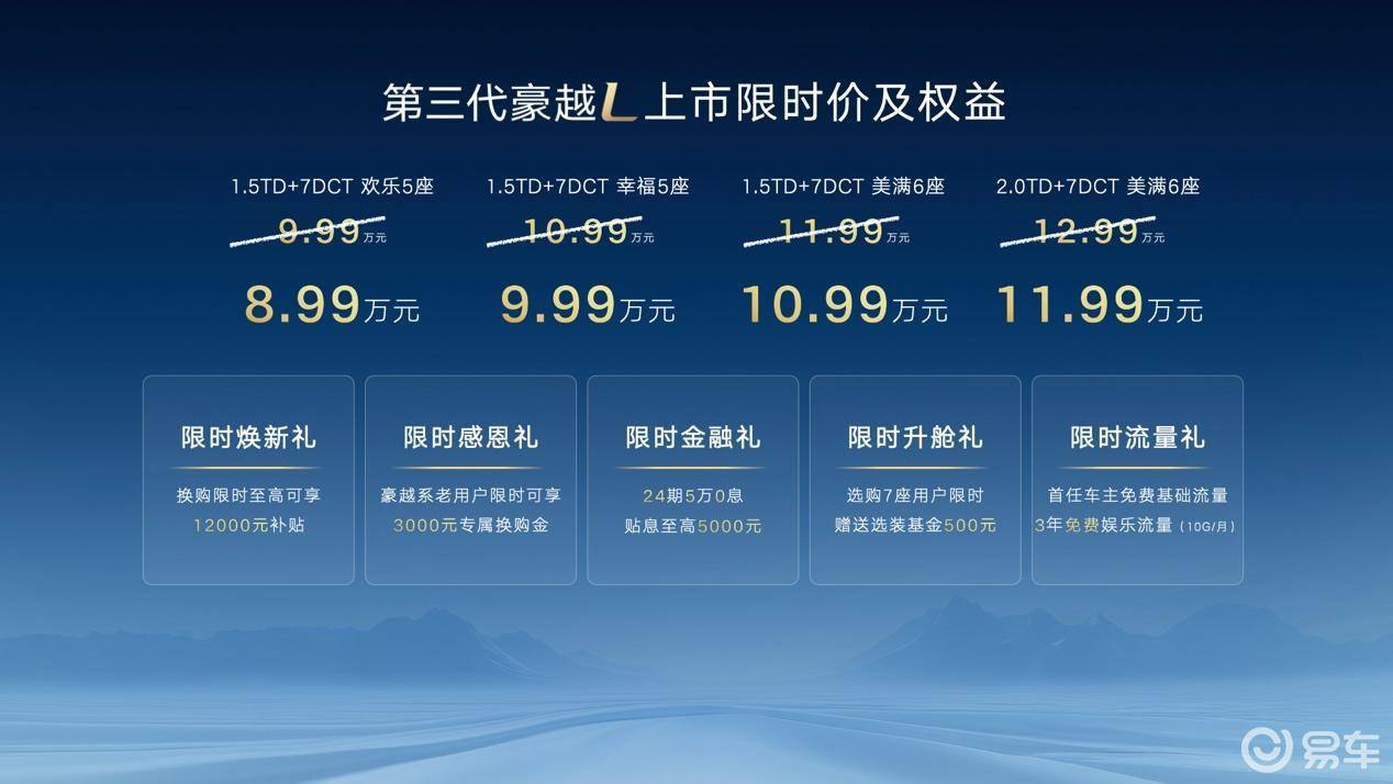 吉利汽车近日在海南儋州海花岛正式推出第三代豪越L,这款定位为“大家庭全能SUV”的车型以9.99万元至12.99万元的官方指导价进入市场,上市限时价则从8.99万元起,成为B级燃油SUV领域的新竞争者。作为吉利中国星家族中唯一的B级燃油SUV,第三代豪越L通过多维度的产品升级,精准回应了家庭用户对大空间和多样化用车场景的需求,为中型SUV市场注入新的活力。