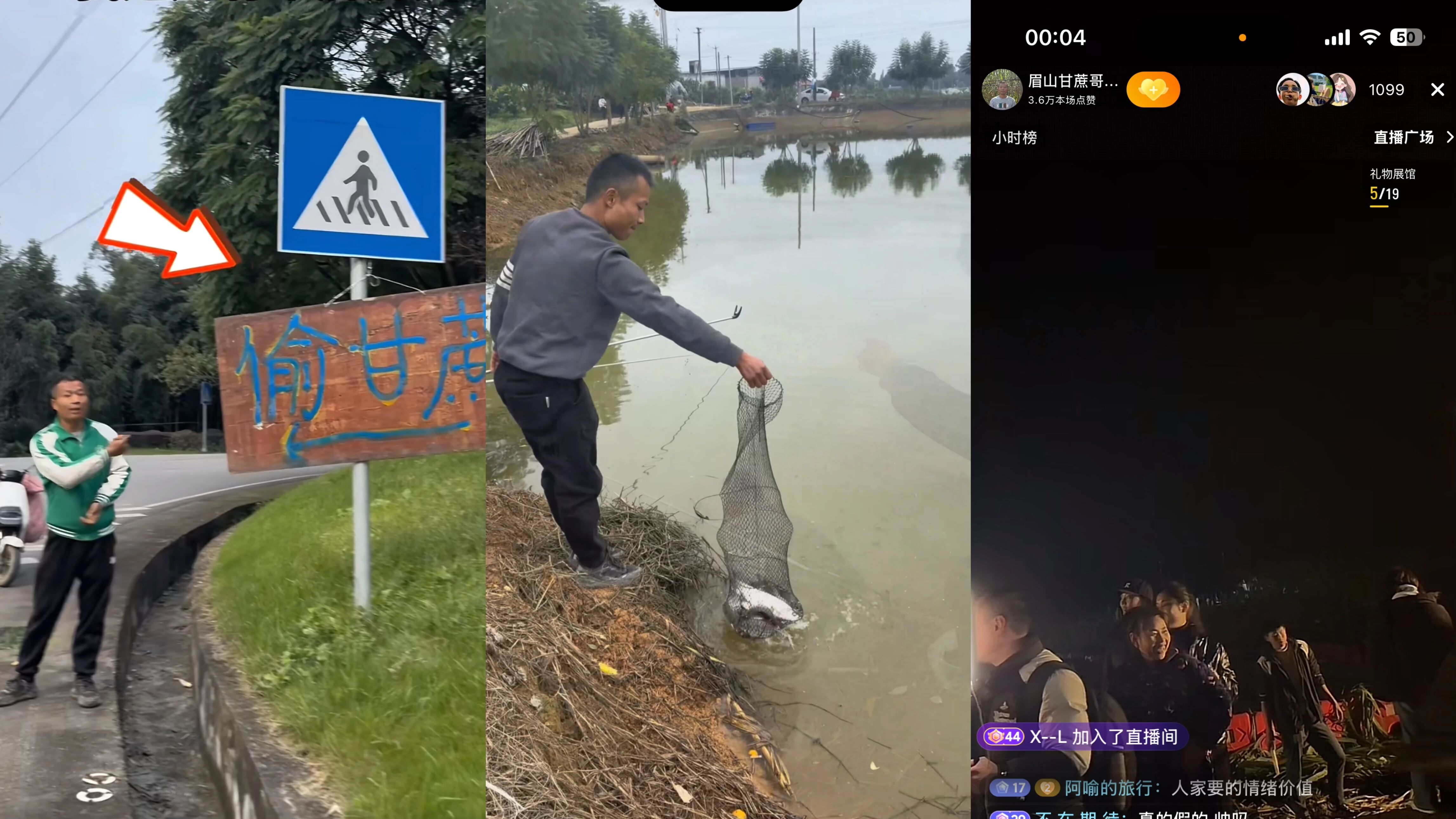 评论区有人建议开直播抓小偷,网友还能一起抓。童师傅很有互联网思维,于是直播间里便有了半夜十二点线上一千人和他一起捉小偷的“奇怪互动”。在指路视频里,他表现得十分热情,邀请过来的游客免费喝酒吃烧烤,旁边还有大鱼塘能够钓鱼。
