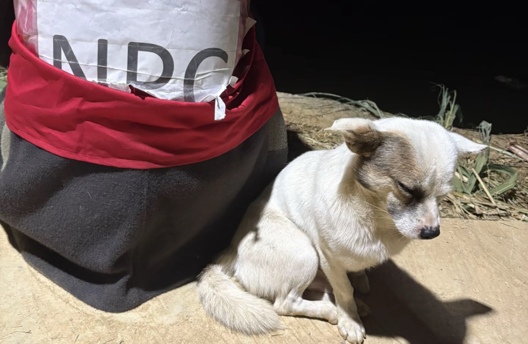 人多到什么程度?最直观的例子是狗。童师傅家负责追捕的狗经历了几天几夜的高强度“追捕”后,有网友拍到它在路边瘫坐,对人群无动于衷,累到睁不开眼睛。