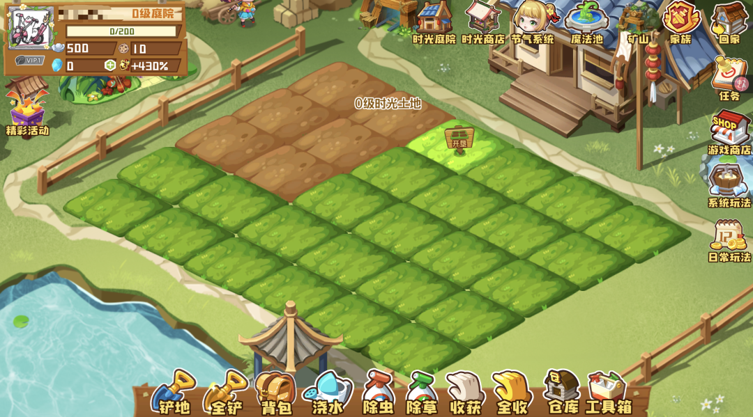 开心农场,顾名思义每个人拥有自己的一片农场。在游戏里你需要像真正的农场劳作一样浇水、施肥、除草、收获。如果不及时采摘,就可能被好友们偷走,当然你也能去好友的菜园里偷走他们将要收获的成熟果实。
