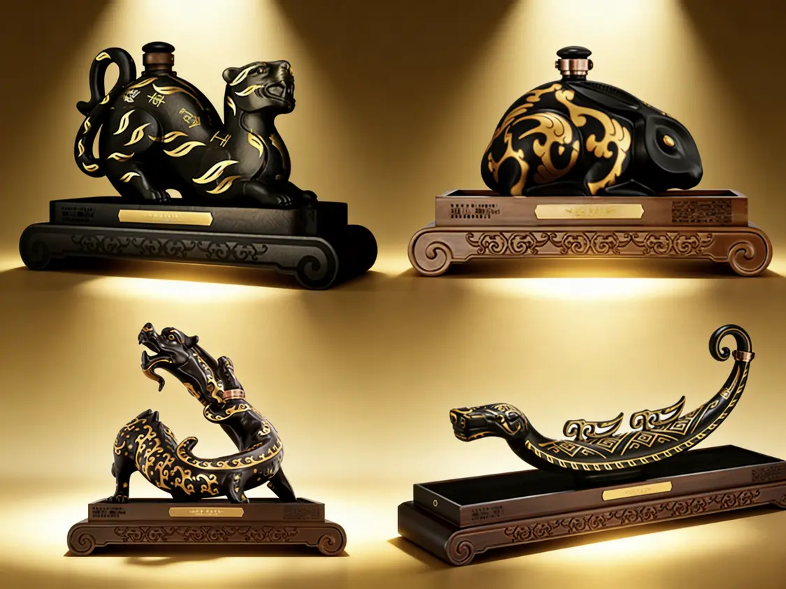 2021年起,珍酒在行业内创新推出“错金”生肖系列,首款“错金铭文虎”灵感源自西汉南越王博物馆藏品错金铭文虎节,“错金兔”灵感源自观复博物馆藏品错金银兔形镇,“错金龙”灵感源自故宫博物院藏品错金铜蟠龙,“错金蛇”灵感源自三星堆博物馆藏品青铜蛇,让“沉淀于历史、珍藏于馆阁”的文化遗产真正“活化”和“流动”起来,构建了一条清晰、可持续的文化IP脉络。