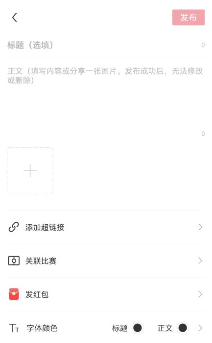 3、输入你的内容,可以添加超链接、图片,或者关联比赛和发红包,完成之后点击右上角的发布就可以了。
