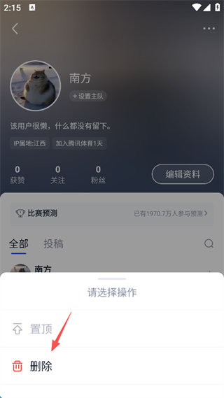 腾讯体育官方版App怎么删除自己的评论