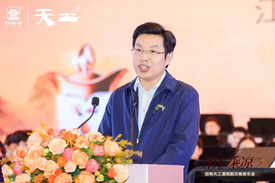 “四特酒的酿造过程,本身就是一曲动人的交响诗。”江西文演集团副总经理胡志坚在致辞中指出:酒与乐,看似形态各异,实则神魂相通。它们都是时间的艺术,是匠心的结晶,是人类情感与智慧的卓越创造。四特天工酒对文化事业的支持,正体现了优秀企业高度的文化自觉与强烈的社会担当,是推动物质文明与精神文明协调发展的生动实践。
