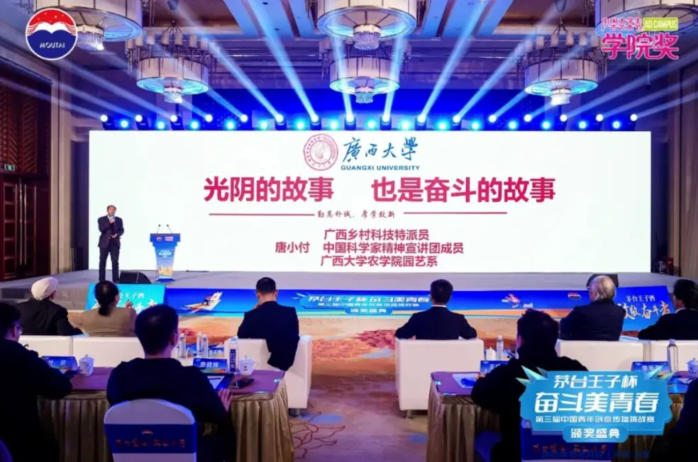 第三届大赛的进阶之路令人瞩目。在原有创意赛道基础上,新增纪录片赛道,强调真实记录与深度叙事,鼓励青年用镜头捕捉时代奋斗者的故事。大赛影响力也在持续扩大,通过设立创意赛、奋斗青年纪录片、茅台王子音乐节、品牌校园大使、社交媒体传播赛五大板块深入年轻群体,以多元形式解读奋斗之美。