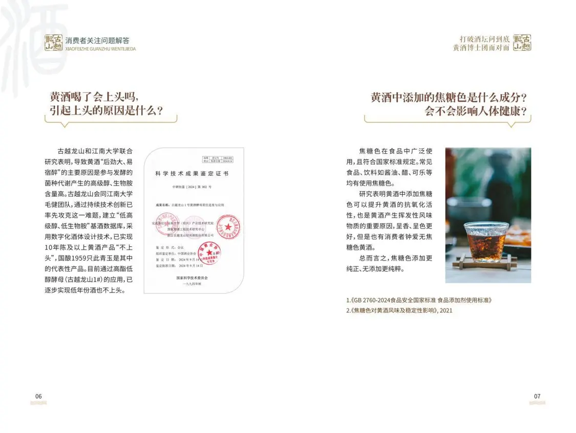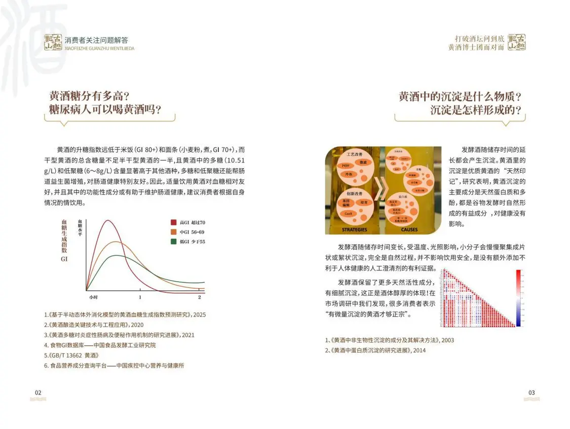 为系统性解决黄酒消费领域的信息不对称问题,本次活动专门精心编纂了活动“黄皮书”,在活动现场首次发布并赠阅。这本手册,系统梳理了黄酒焦糖色、糖分、沉淀等十二大消费者高频疑问,科学诠释了黄酒的健康功能,并首次集中展示了古越龙山在风味物质解析、健康因子挖掘及工艺创新等方面的最新科研成果。手册中每一结论均标注了研究与文献来源,因其内容的权威性与系统性,成为现场嘉宾争相获取的“黄酒百科全书”。