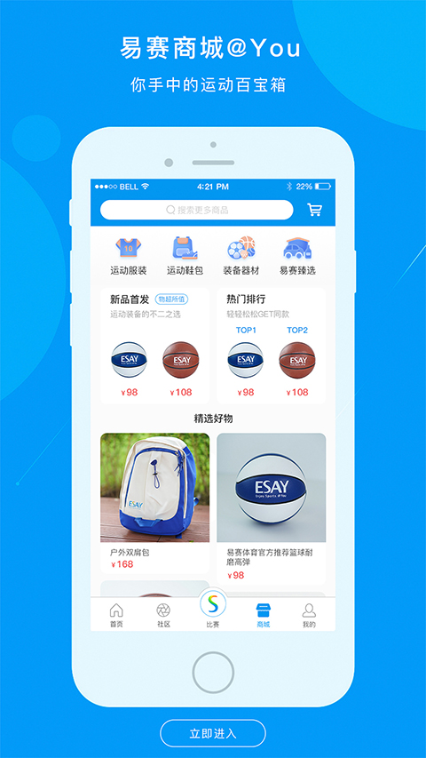 品牌齐全的运动装备,赛事珍贵收藏品,洛阳纸贵的大赛门票。易赛商城,助你一键升级运动感受,拥抱体育生活。