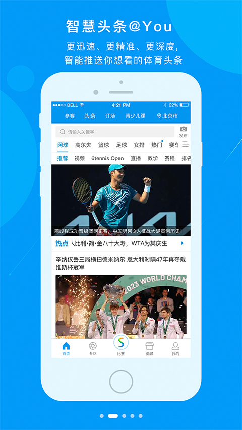 易赛体育App是一款开放的体育资讯软件,软件秉承“Enjoy Sports @You”的宗旨,集智慧头条、开放赛事、专属社区和服务商城于一体,将纯粹的体育快乐带给你。易赛体育作为一款线上优质的体育相关的资讯平台,为用户带来最新的体育赛事,还有各种体坛相关的八卦消息等。线上有众多优质的相关的直播资讯将会为你第一时间进行呈现,能更好的帮助用户进行了解,为用户准备了最新的直播节目。