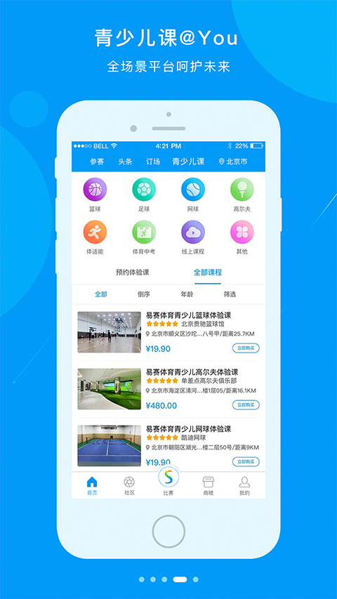 提供运动场馆的线上预订服务。现已覆盖全国各城市,网球、篮球、足球、高尔夫、羽毛球等应有尽有。随时查看当地可订球场,一键预订,运动无忧。